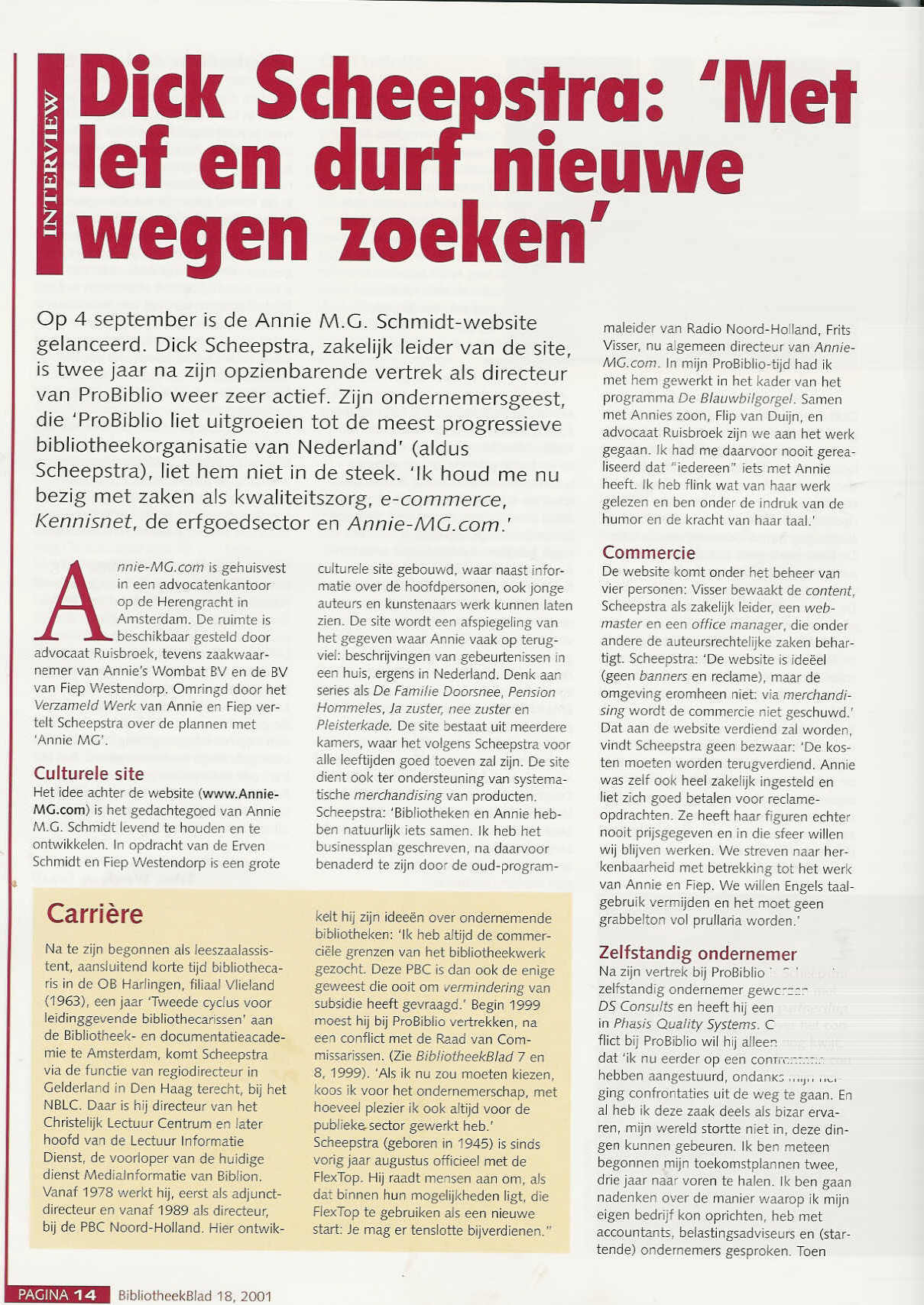 - Honderden recensies en artikelen in het Nederlands Dagblad; onder andere een totaaloverzicht van de Nederlandse detective en thriller en - gedurende twee jaar - een eigen tweewekelijkse halve pagina met de rubriek Ex Libris met recensies en over ontwikkeling in de informatie-industrie en het bibliotheekwezen.