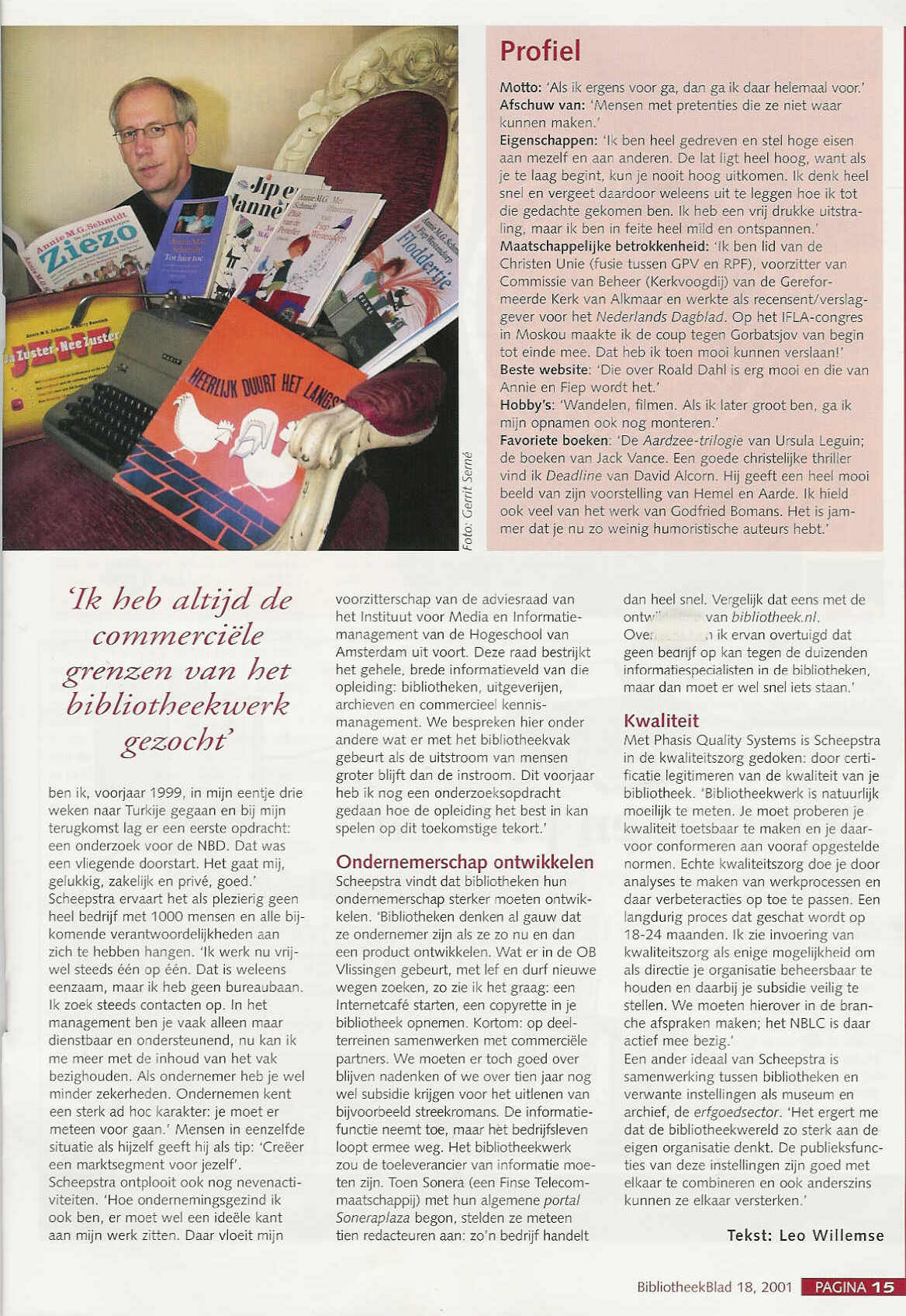 - Honderden recensies en artikelen in het Nederlands Dagblad; onder andere een totaaloverzicht van de Nederlandse detective en thriller en - gedurende twee jaar - een eigen tweewekelijkse halve pagina met de rubriek Ex Libris met recensies en over ontwikkeling in de informatie-industrie en het bibliotheekwezen.